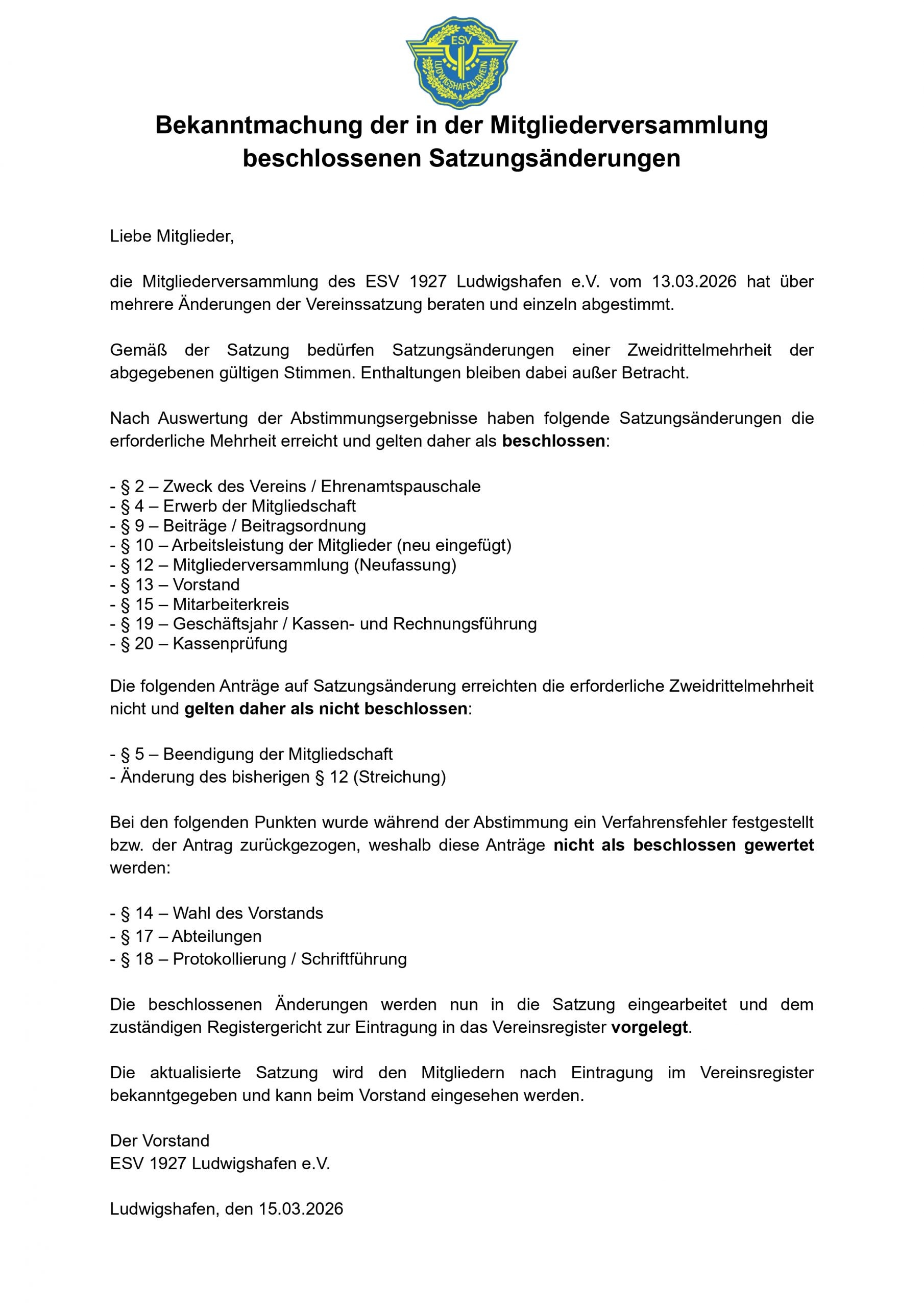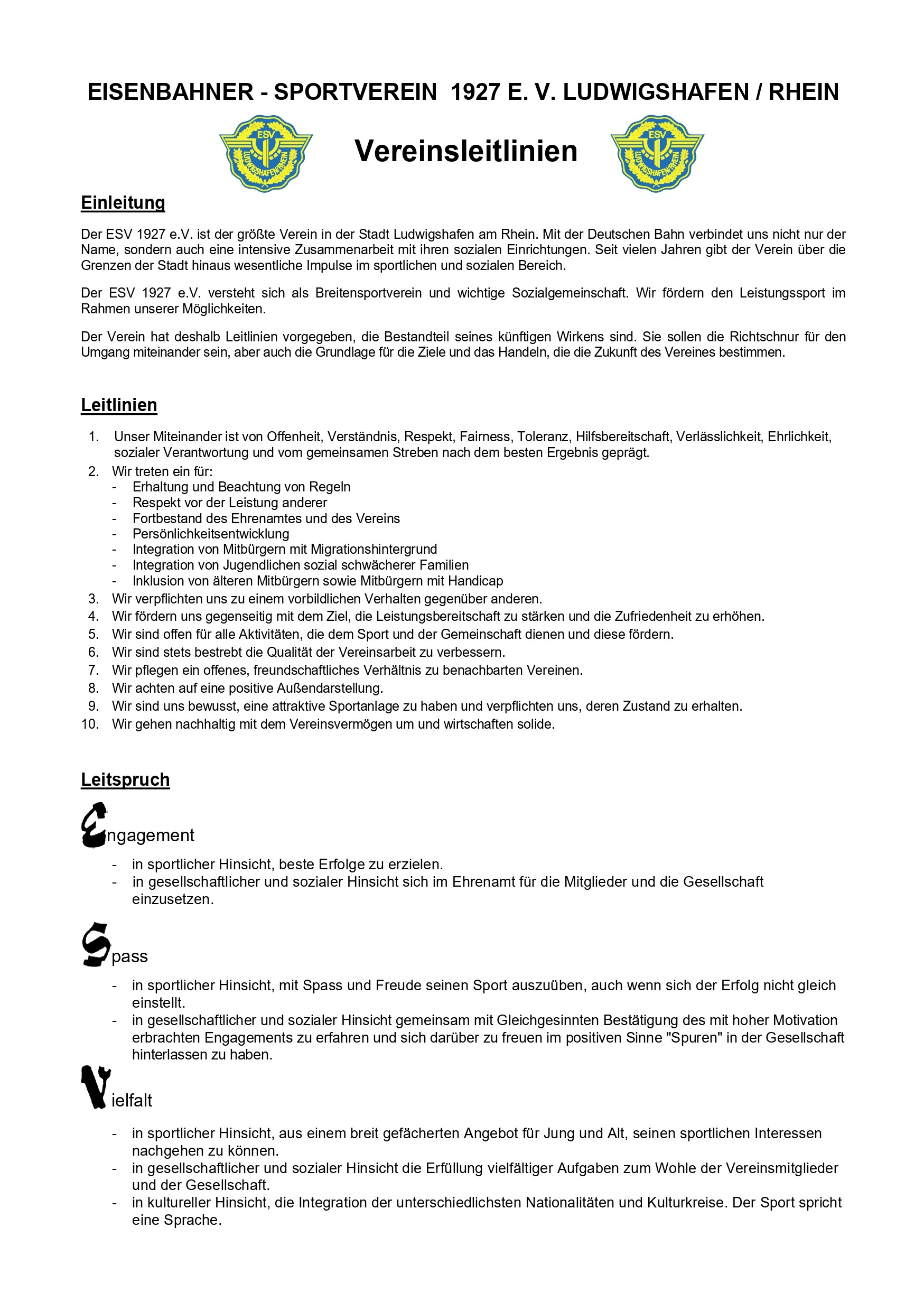 Herzlich willkommen beim ESV 1927 e.V. Ludwigshafen!